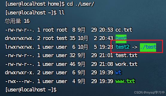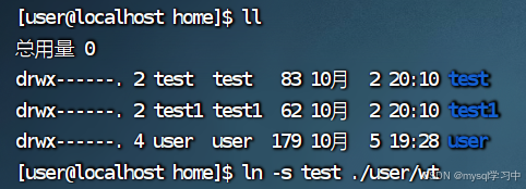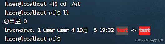 而参数2文件夹存在时建立软连接是在文件夹内,而且参数1指向参数1 (演示二)