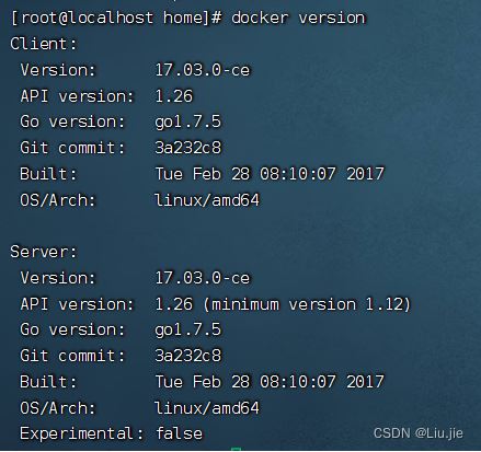 - 查看命令:docker version