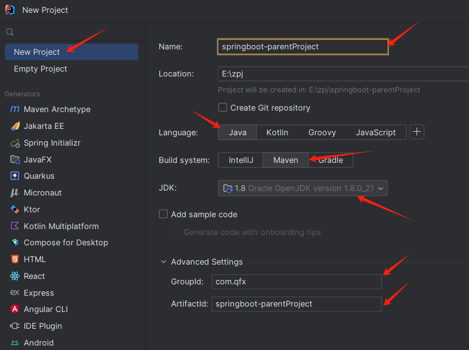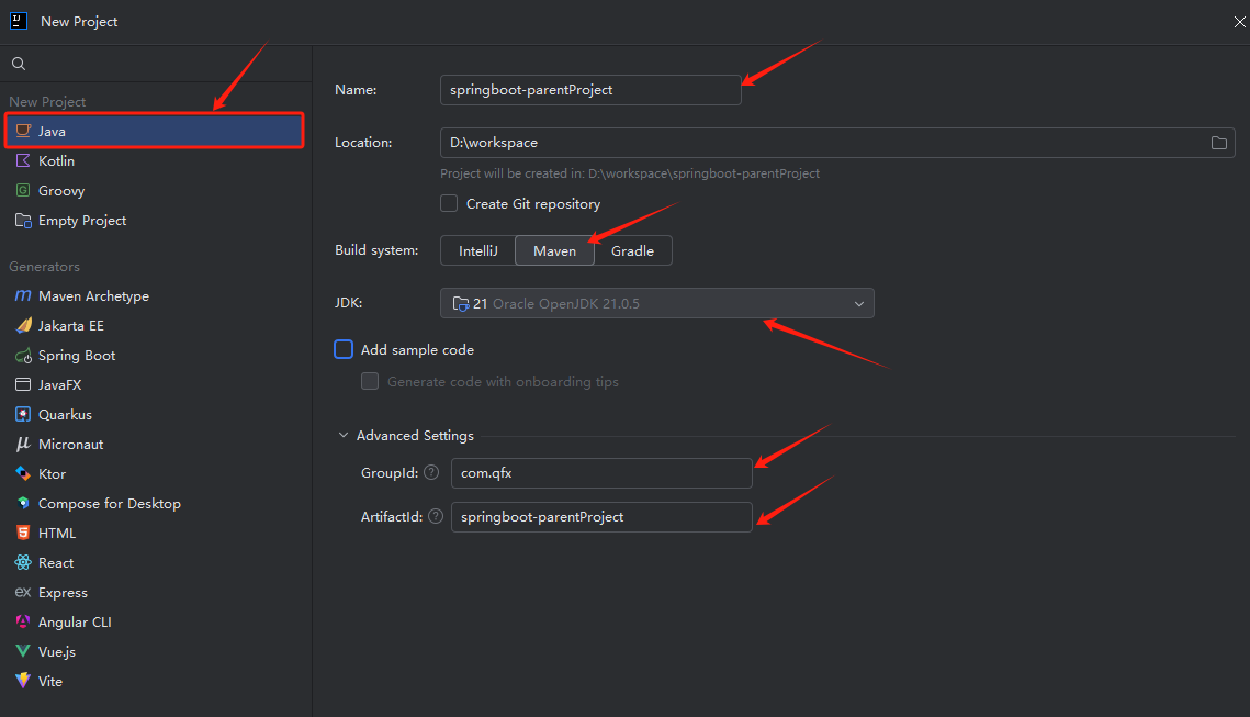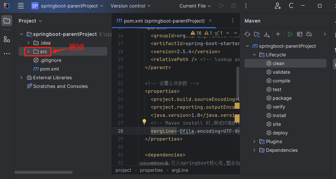删除多余的文件,仅保留.idea、.gitignore和pom.xml文件即可