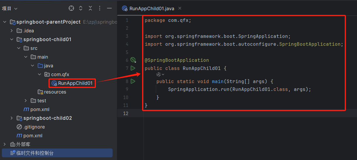 - 想要同时启动多个子项目,需要保证每个子项目的端口不一样,否则启动会报端口冲突的错误