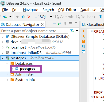一开始我还以为是自己的数据库没有创建成功,所以一直在本机的postgresql数据库上找问题,但并无结果;但后来发现,这个问题在网上有很多人遇见过,其提到这个不是postgresql数据库的问题,而是dbeaver的设置问题。经过尝试,发现了问题所在,具体问题的解决方法也是非常简单的。