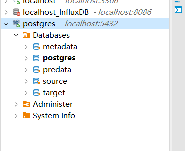 经过上述设置,我们就可以在dbeaver左侧的数据库连接中,看到我们其他的postgresql数据库了;如下图所示。