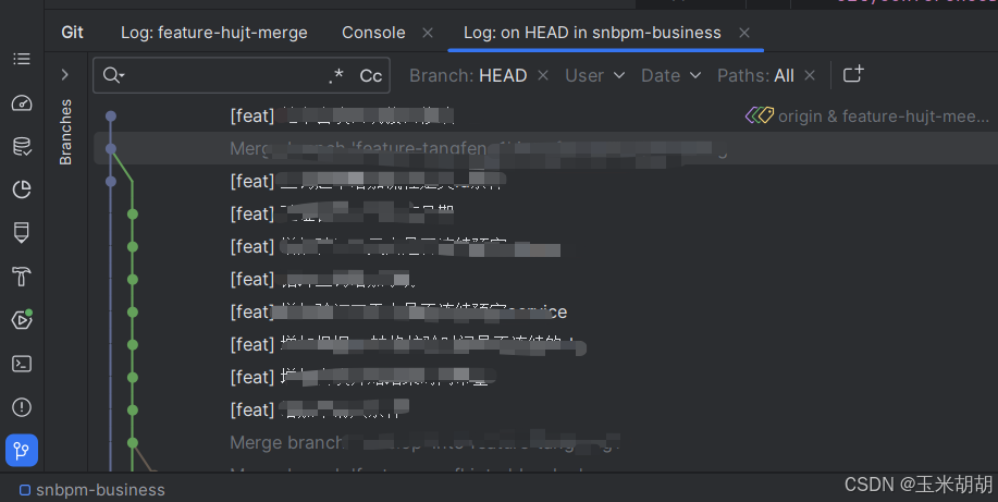 3. 选择需要回退到的提交记录,在上述步骤的日志记录中鼠标右键点击指定记录【reset current branch to here…】,如下图: