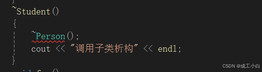 为了保证先调用子类析构,后调用父类析构,父类的析构会在子类析构后自动调用,所以不需要我们手动调用: