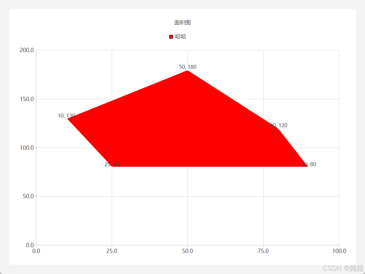 chart -> addseries(area);4、使用qchart::createdefaultaxes()创建默认的x轴和y轴(根据内部的系列)