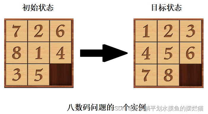 八数码问题是人工智能领域一个经典的问题。也是我们所熟悉的最简单的3×3数字华容道游戏:在一个3×3的九宫格棋盘上,摆有8个正方形方块,每一个方块都标有1~8中的某一个数字。棋盘中留有一个空格,要求按照每次只能将与空格相邻的方块与空格交换的原则,将任意摆放的数码盘(初始状态)逐步摆成某种给定的数码盘的排列方式(目标状态)。