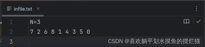 在运行前,需要提前准备好infile.txt文件,第一行规定n的大小,即棋盘的大小,第二行则放置起始状态棋盘中的数字排列,从上往下,从左往右一次排成一列,空格置为0。