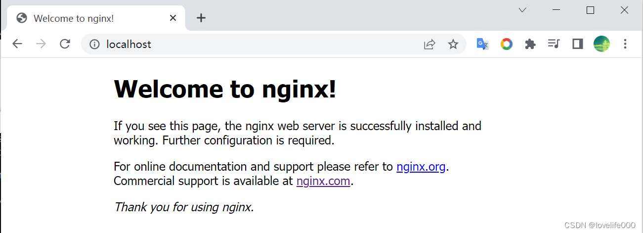 浏览器中输入localhost:80(80为默认端口,可以省略不写)