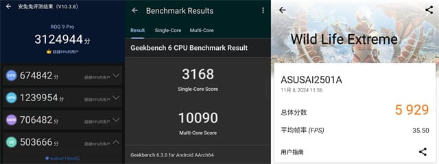 rog 9 pro在安兔兔v10也有接312万+成绩