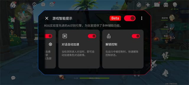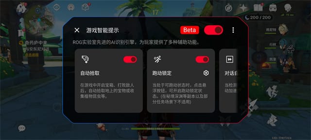 rog 9系列就在游戏体验方面加入了时下流行的ai大模型——ai识别引擎,他能够根据画面元素为游戏提供帮助,比如在玩《原神》时,每次拾取地上的东西非常麻烦,当rog 9pro识别画面中的拾取按钮,就能自动拾取,还有就是跑动一直按着屏幕也确实比较累,点击画面上的按钮就能自动跑动,这些都是让游戏更加方便的体验。