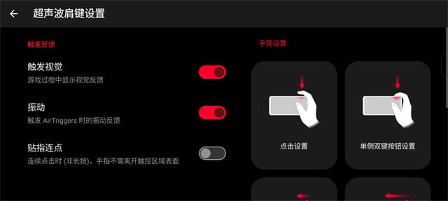 rog系列一直搭载的air triggers肩键,可以将操作映射到特定区域,不仅支持设定点击、滑动、双操控等多种操作方式,还能够针对不同游戏定制不同方案,配合酷冷风扇 x pro,还有有着更多的两个风扇按键,全新升级的超声波方案,手感更加舒服,操作也更灵敏。