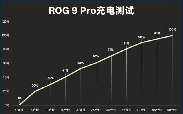 同时rog 9 pro搭载了一个5800mah大电池,能够满足更长时间的游戏需求,65w有线快充和15w无线充电,经过实测,从1%充至100%用时50分钟,不到一小时的不能时间可以接受,配合大电池就有着非常不错的体验。