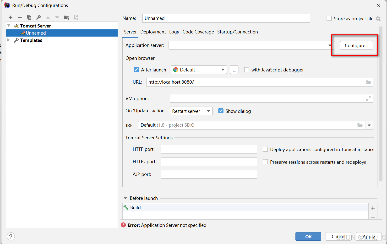 点击左上角的加号,找到tomcat server 选择local(本地),如图所示: