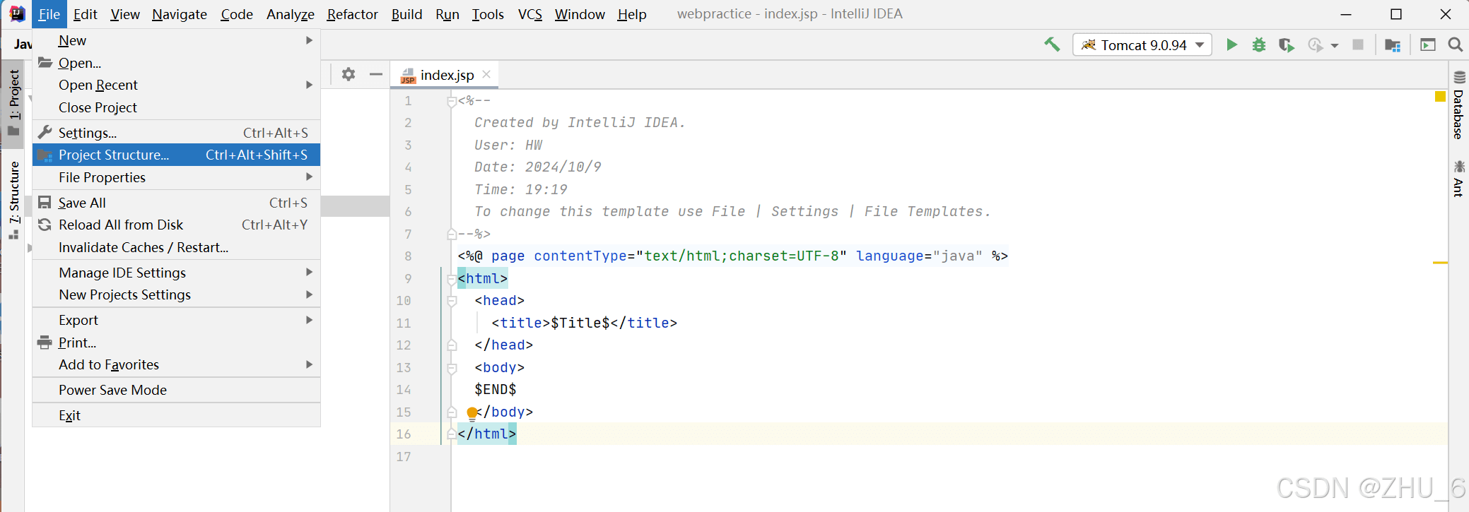 打开idea,打开我们之前创的web application项目,进行部署tomcat。