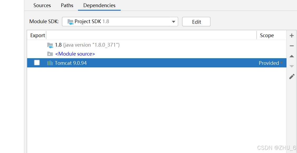 在上张图片中,找到dependencies选项,单击,再单击最右边的加号,如图所示: