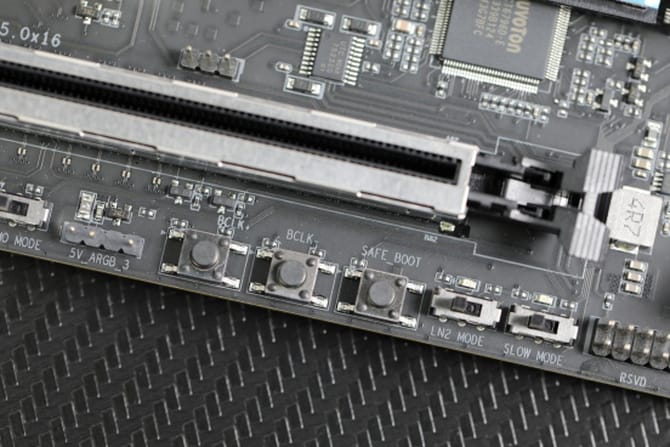 底部的rgb灯光独立控制按钮,bios烧录按钮依旧bclk时钟频率调节按钮,配置非常丰富。