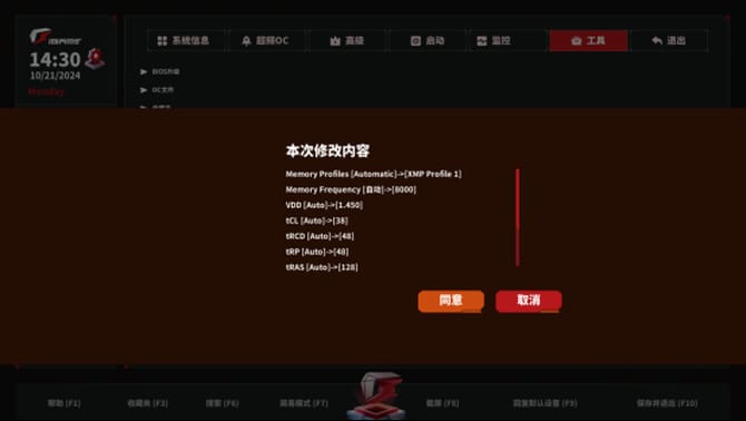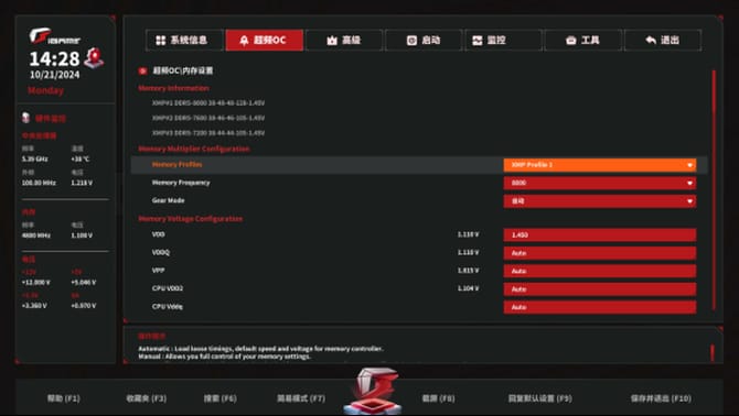 内存频率调整,支持超频设置,非常简单,操作容易上手。