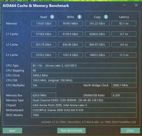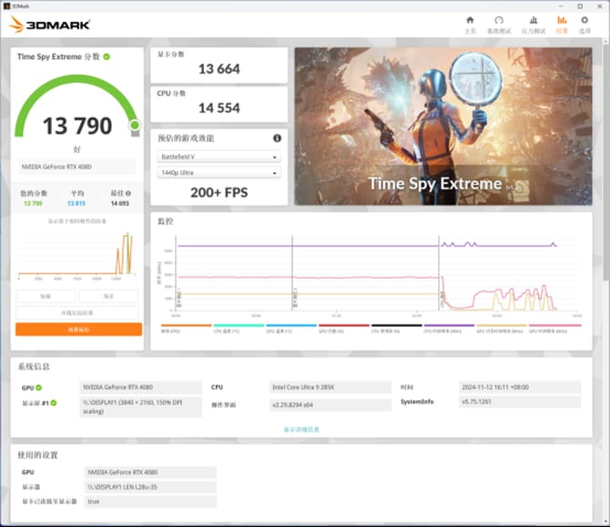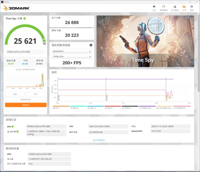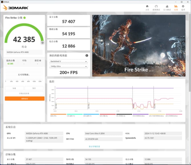 实际性能测试部分,我们选择了英特尔酷睿ultra 9 285k处理器和七彩虹的igame rtx 4080 advanced oc显卡进行测试,最终的测试结果如下。