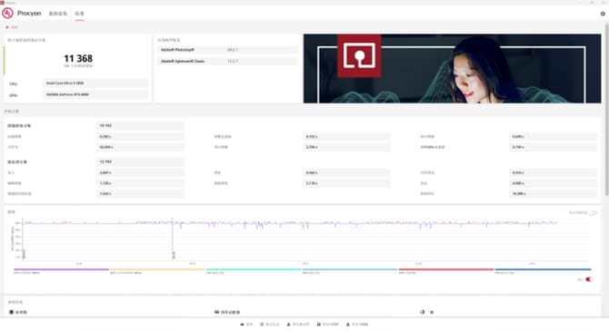 procyon的图片编辑性能测试上,处理器的得分为11368,成绩出色,能够轻松胜任ps和lr的批量图片处理。