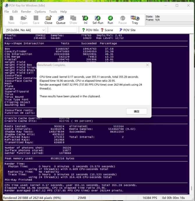 pov-ray的多线程性能上,平均为15457.52pps,性能优秀。