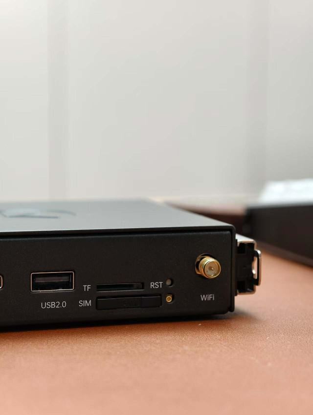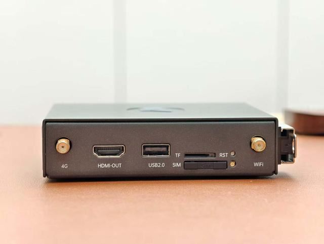 另一端则配备了 4g 和 wifi 天线接口、hdmi - out 接口、usb2.0 接口、tf 卡槽、sim 卡槽以及 rst 重置按钮,丰富的接口设计为其在不同场景下的应用提供了强大的扩展性。