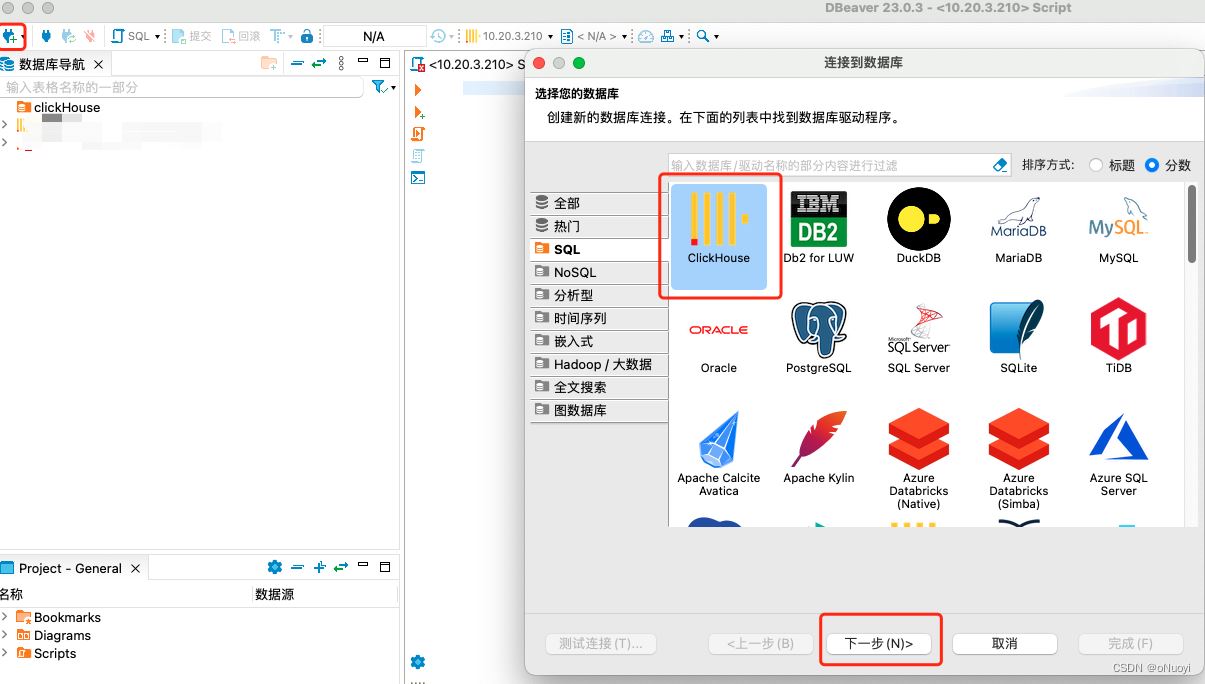 这个时候可以使用dbeaver远程连接,需要选择clickhouse驱动
