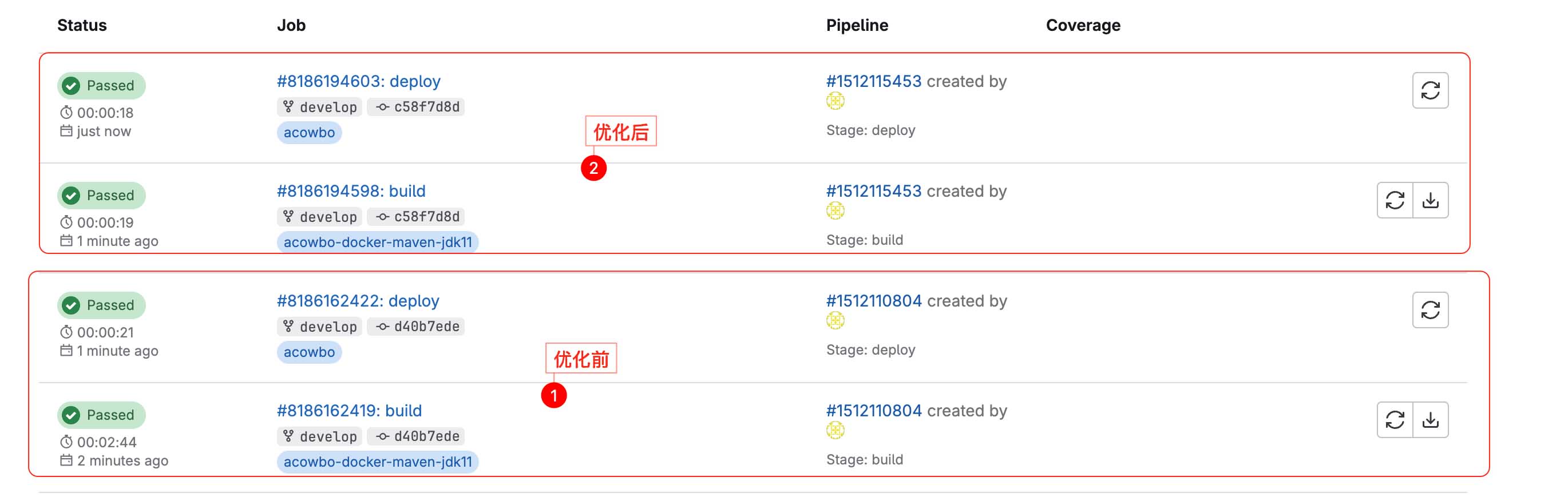 优化前大概发一次版本需要三分钟,优化后仅需要不到40s