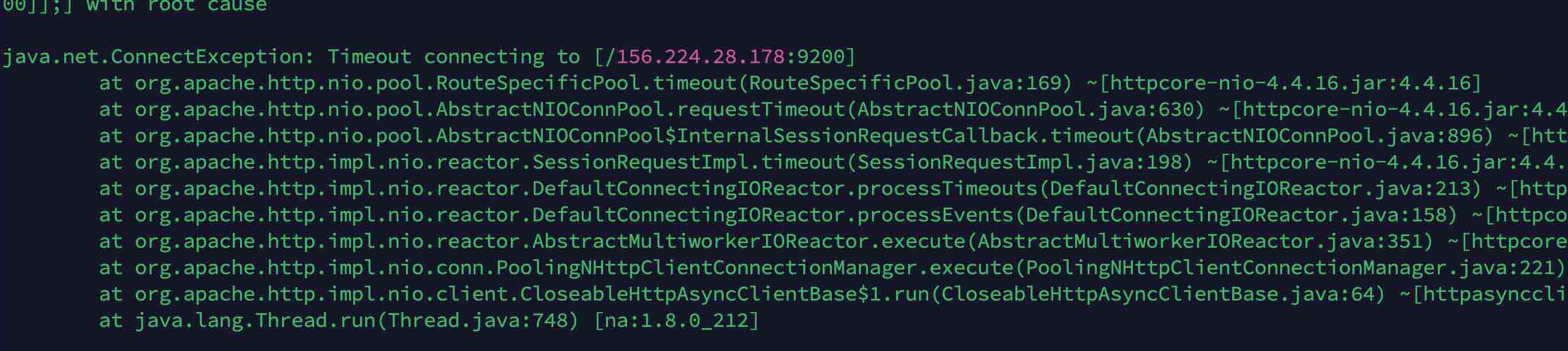 事情的起因是我在服务器a中部署了一个用docker实现的java项目,这个项目中依赖于另一台服务器中的elasticsearch,但是一直显示无法连接,