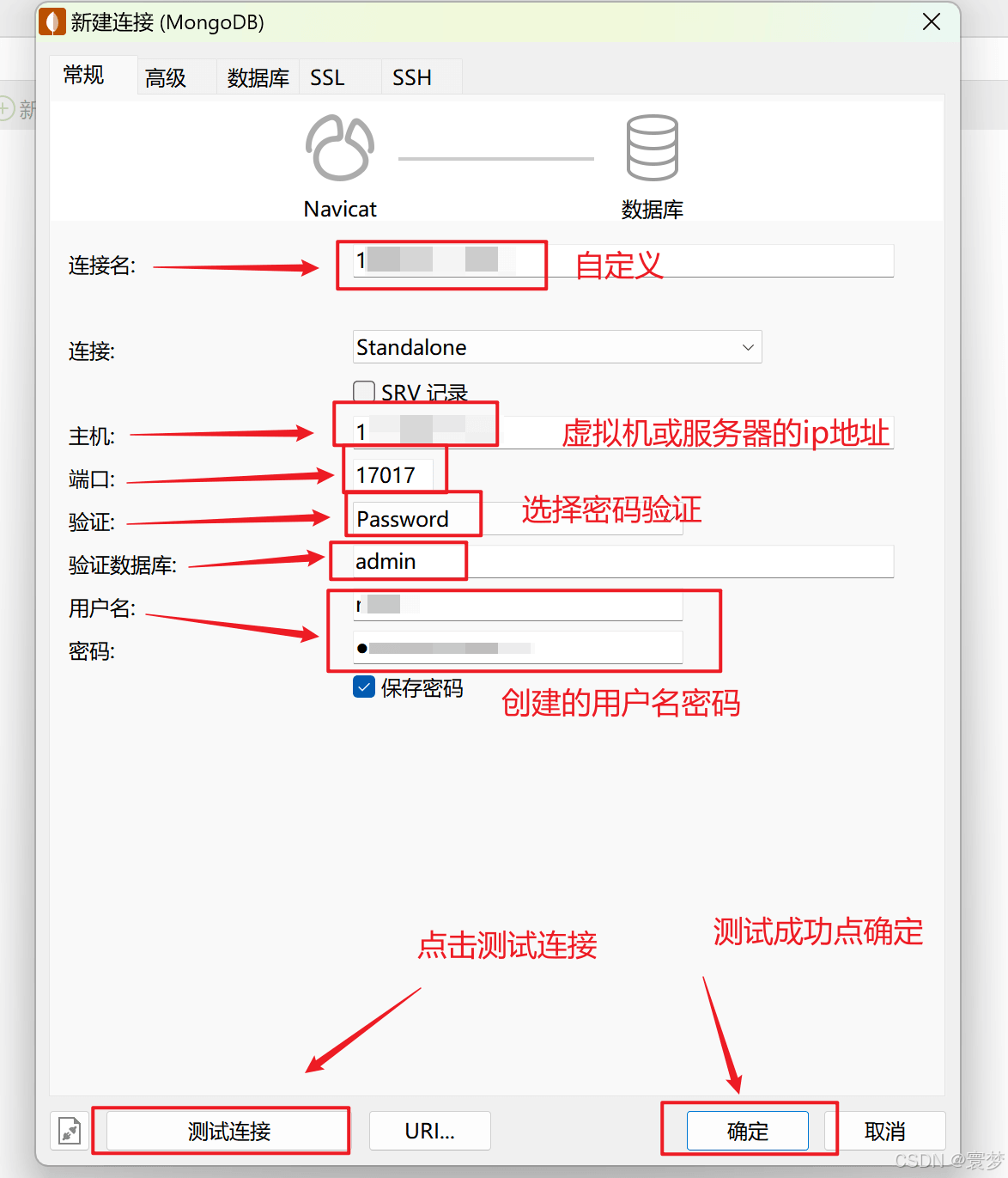 3.填写完成配置信息后,点击左下角“测试连接”按钮