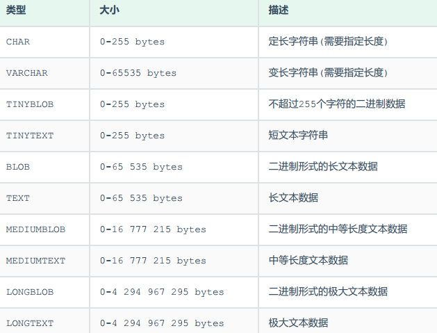 通过这条指令,我们可以查看到指定表的字段,字段的类型、是否可以为null,是否存在默认值等信