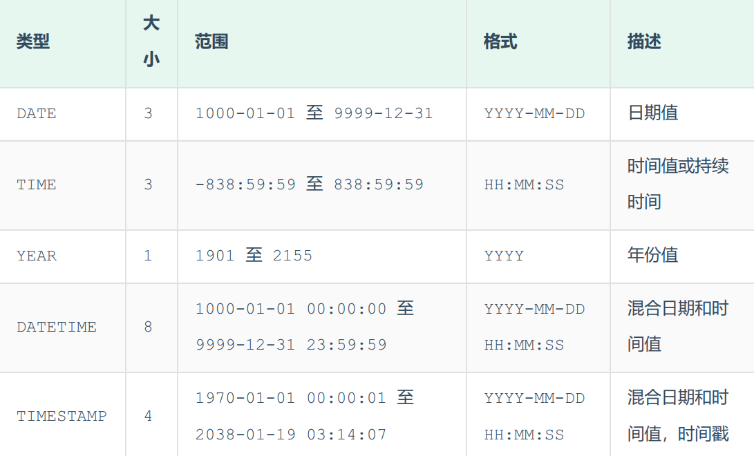 日期时间类型