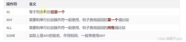 多行子查询的操作符:in,any,all,some(any)