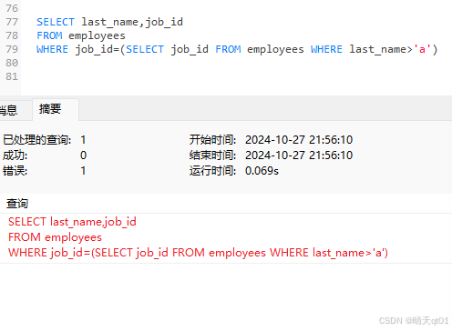 内查询返回多行数据