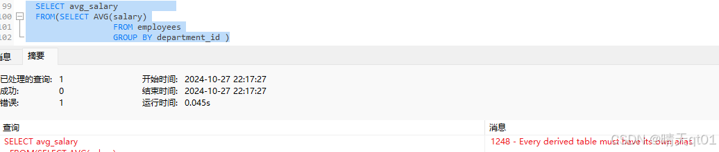 结果报错了,他所,我们需要给这个表一个别名,顺便给字段也来一个别名不然容易()出错