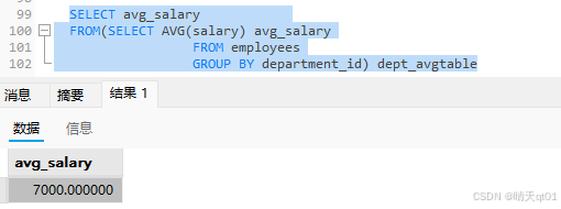 还有方法2,我们看(select avg(salary)