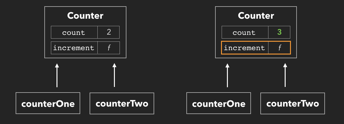 updateuser 函数更新 user 的 email 和 password 属性的值,如果它们的值传入函数,函数返回的就是 user 对象。updateuser 函数的返回值是 user 对象,意味着 updateduser 的值与 user 指向的是同一个 user 对象。updateduser === user 为 true.