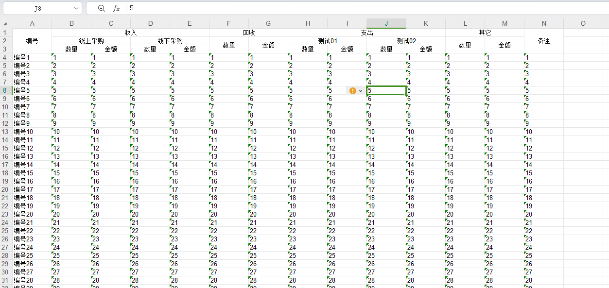 row["支出-测试02-数量"] = i;