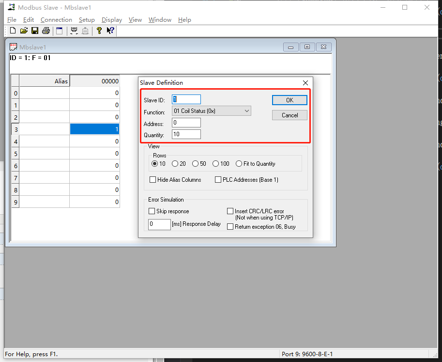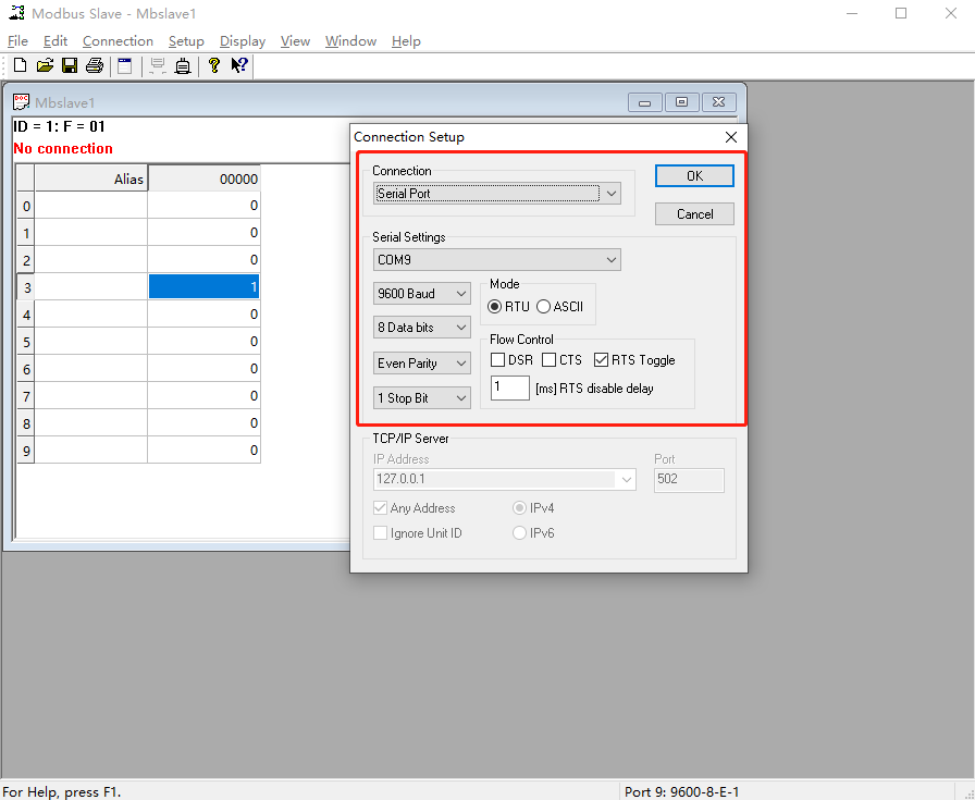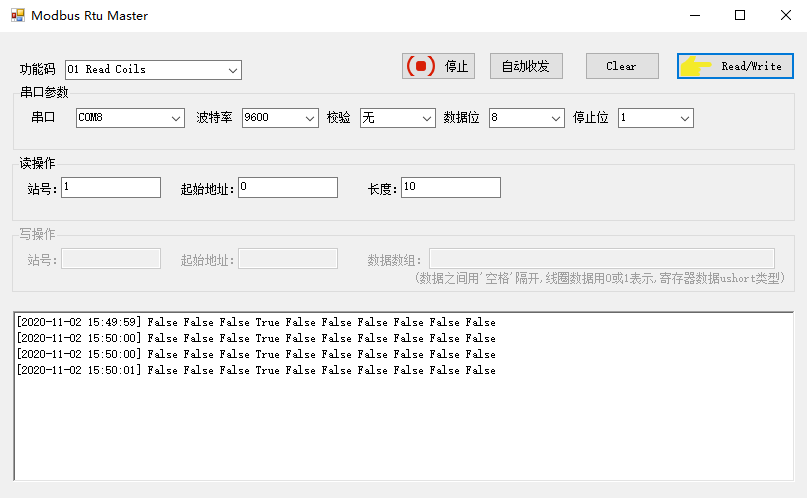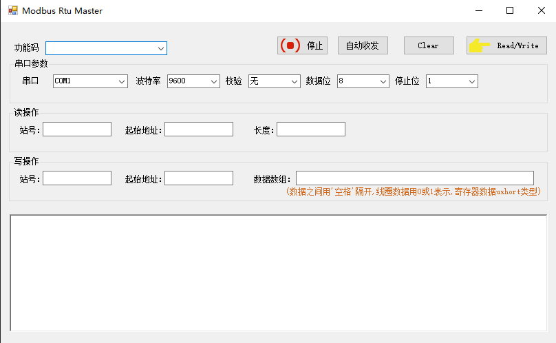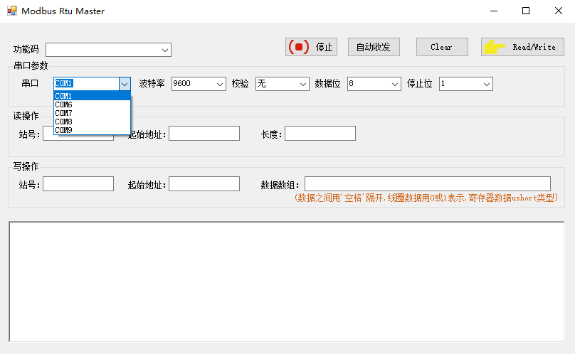 最后需要运行自己创建的modbus rtu master上位机,完成相应的配置: