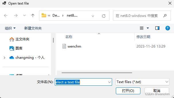 /// 用户选择文本文件并选择“确定”后,可用 openfile 方法在记事本中打开该文件
