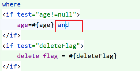 但是这时其实还有一个问题,如果说 age 和 deleteflag 都没有传入的话,最后的 sql 语句 where 后面就没有了,这时又会报错了