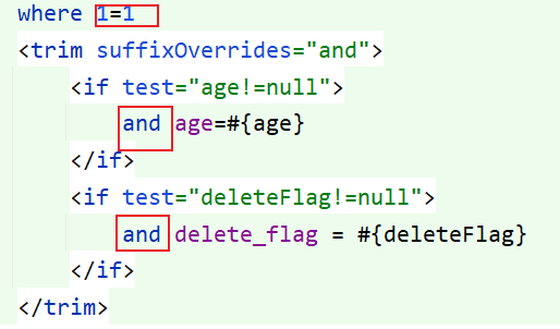 这种情况 trim 就解决不了了,其中一种解决方式是在 where 后面加上 1=1,那么 and 就需要加在前面了: