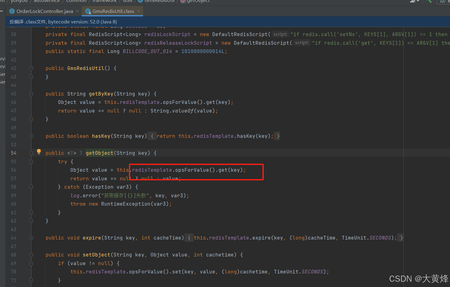 gmsrredisutil.getobject(key)实际是调用redistemplate.opsforvalue().get(key) 方法,