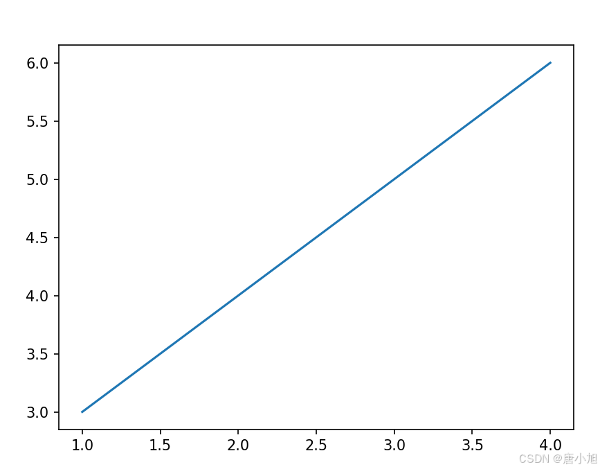 import matplotlib.pyplot as plt import numpy as np x=np.array([1,2,3,4]) y=np.array([3,4,5,6]) plt.plot(x,y) plt.show()