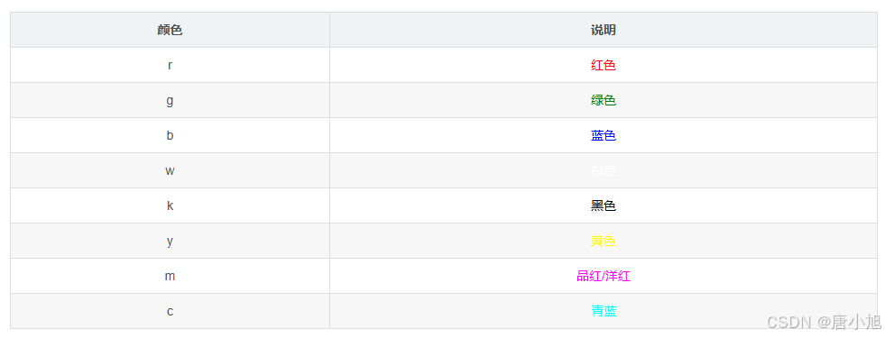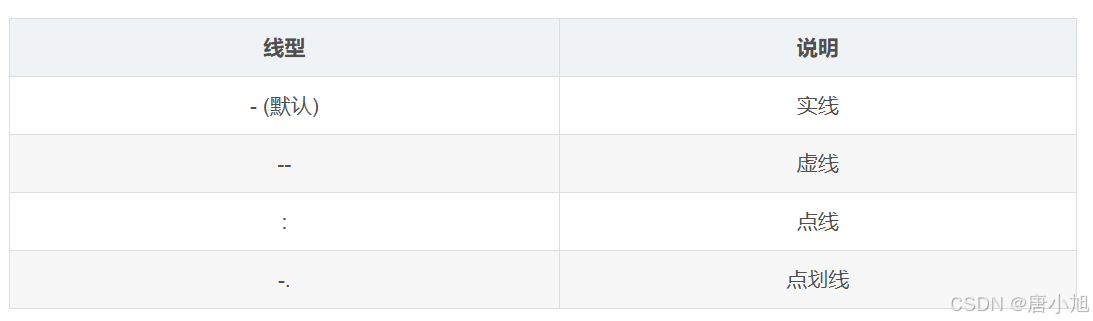 示例: ‘–+g’ 是带有加号标记的绿色虚线