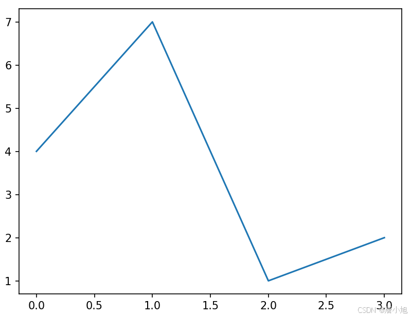 import matplotlib.pyplot as plt import numpy as np x1=np.array([1,2,3,4]) y1=np.array([4,7,1,2]) plt.plot(y1) plt.show()