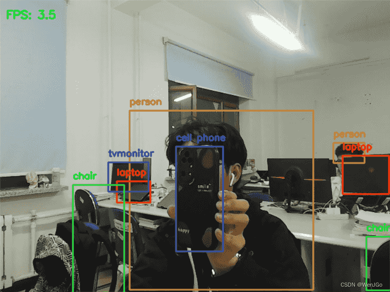 显示结果:在屏幕上实时显示处理后的视频帧,并计算显示fps(每秒帧数)。