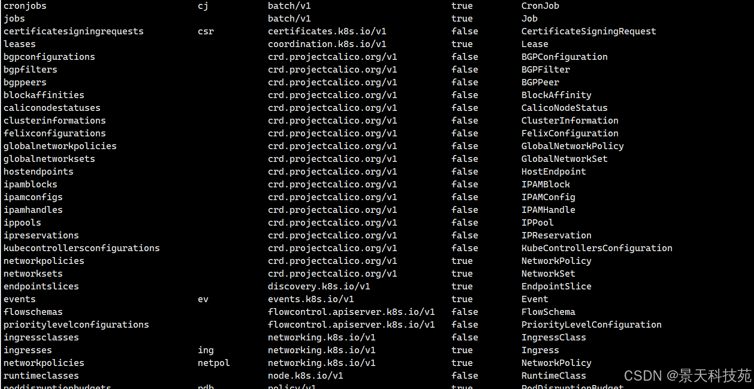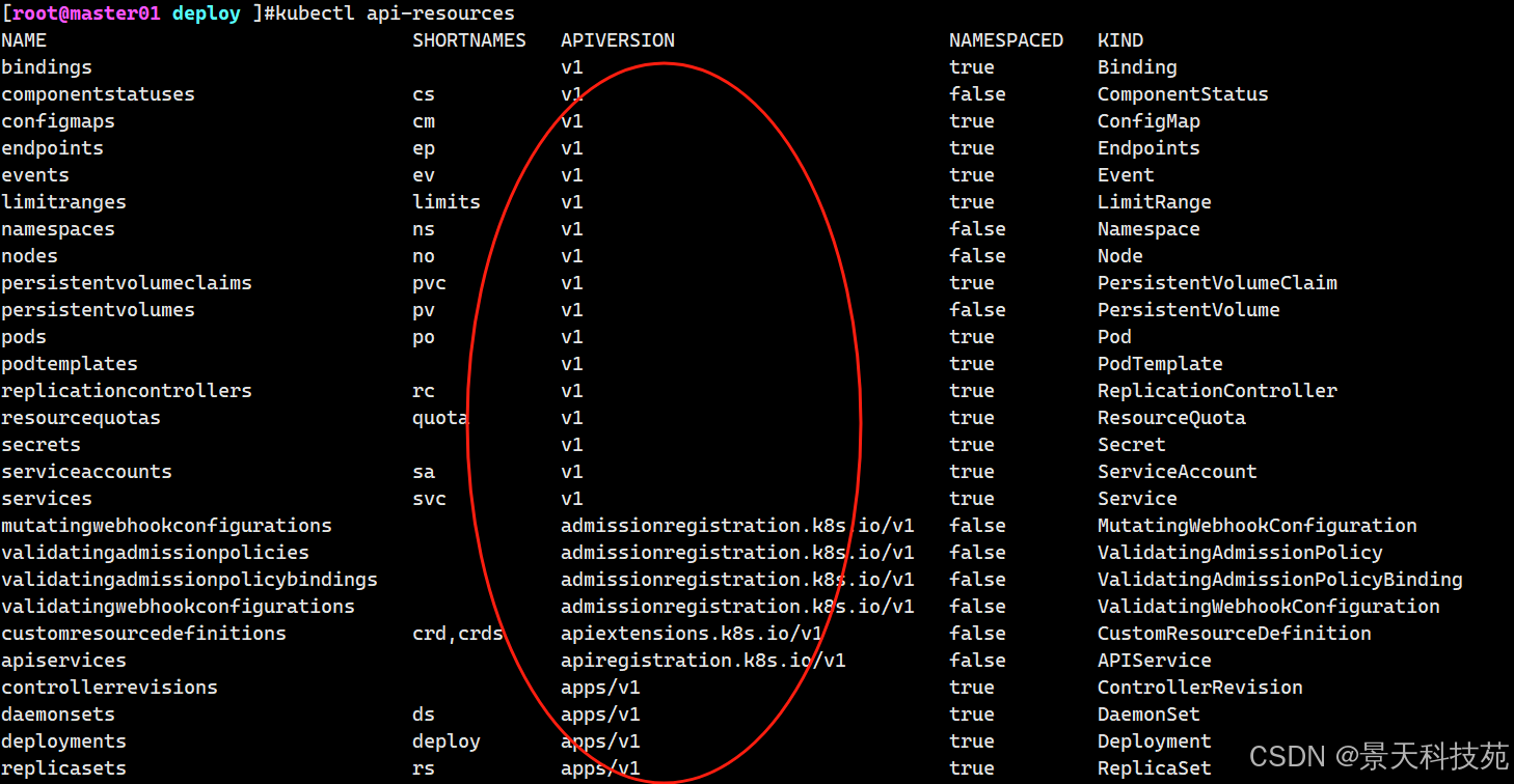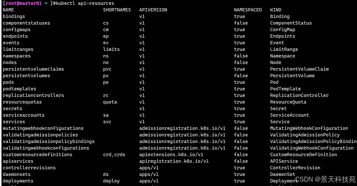 之前,我们说过,在k8s集群中,可以通过命令 kubectl api-resources查看