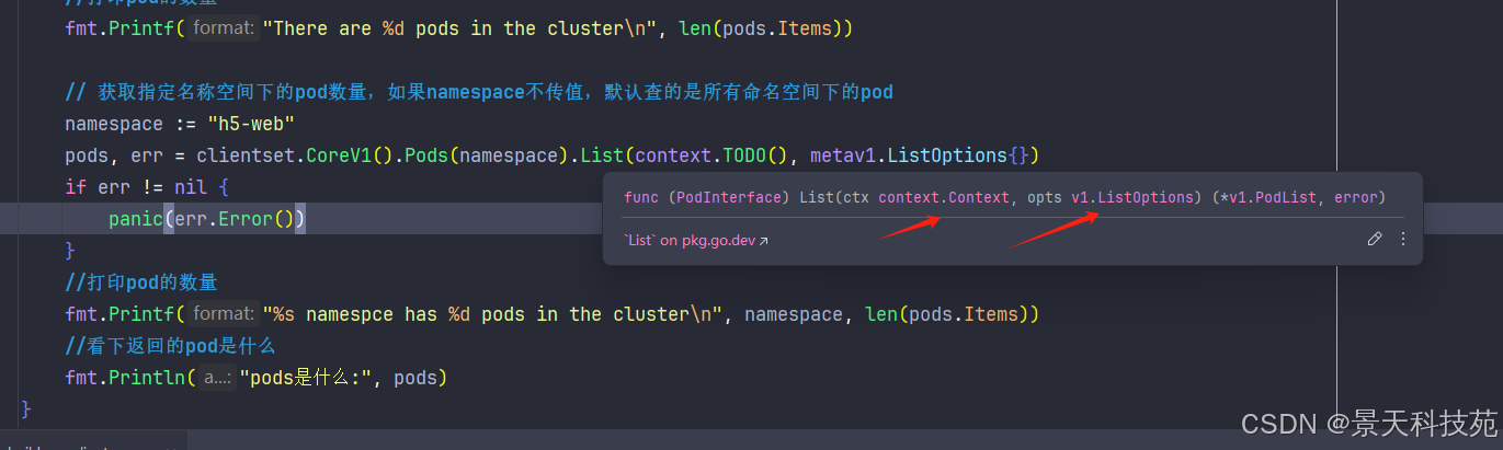fmt.printf("there are %d pods in the cluster\n", len(pods.items))