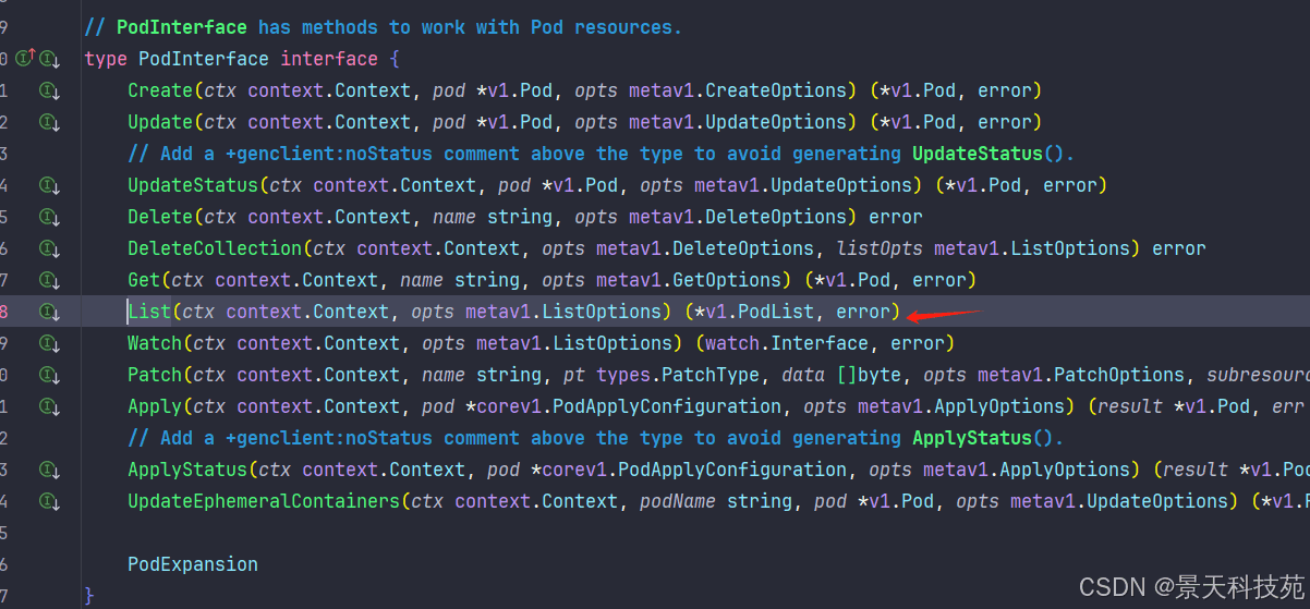 我们看下list方法的参数,包含两个,一个context,一个是listoptions。