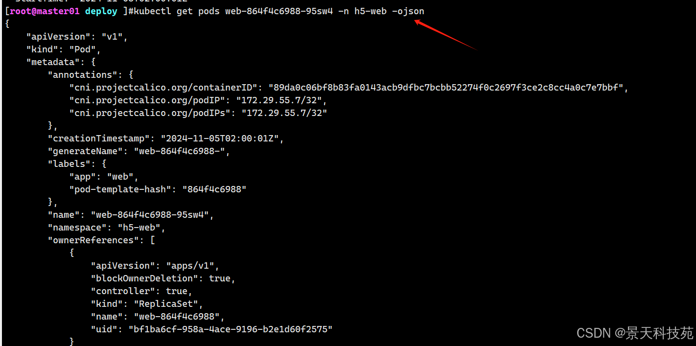 如果忘记pod的层级关系,可以使用k8s命令的-ojson 查看一下